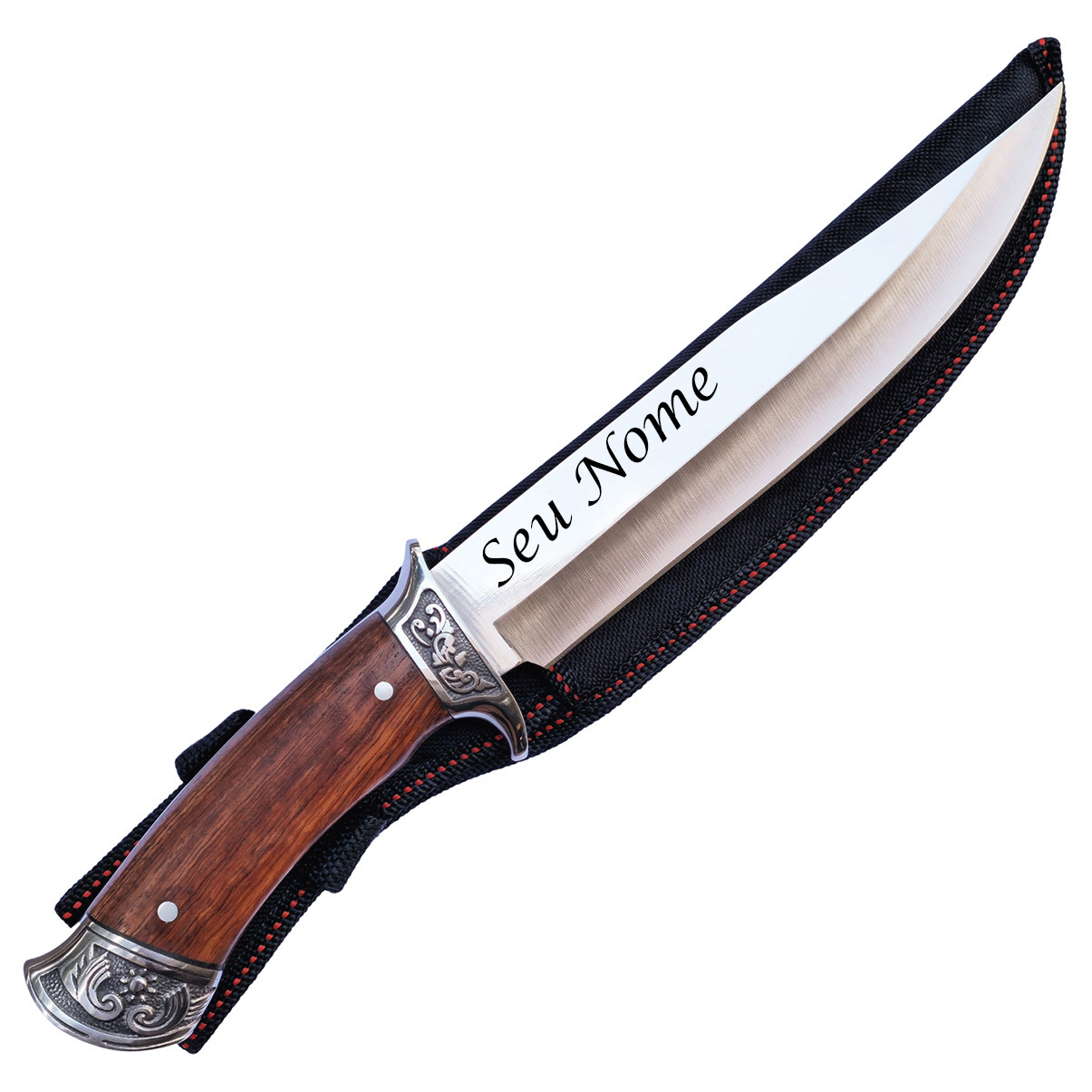 1 Faca Churrasco Caça e Pesca Cabo Artesanal Em Madeira e Metal